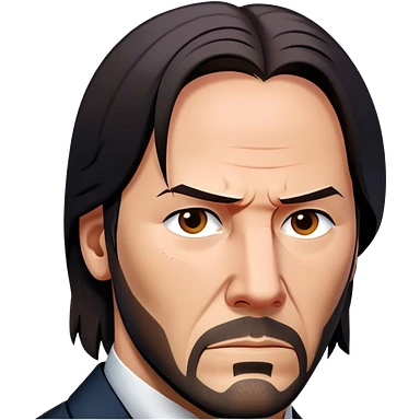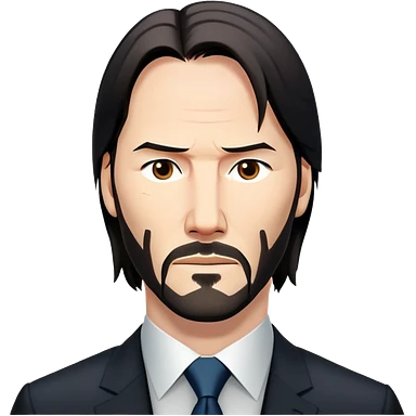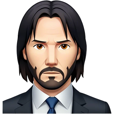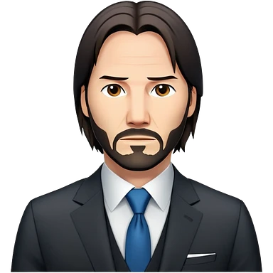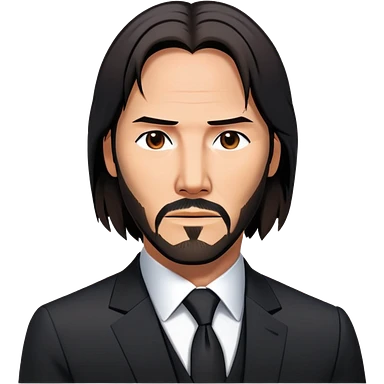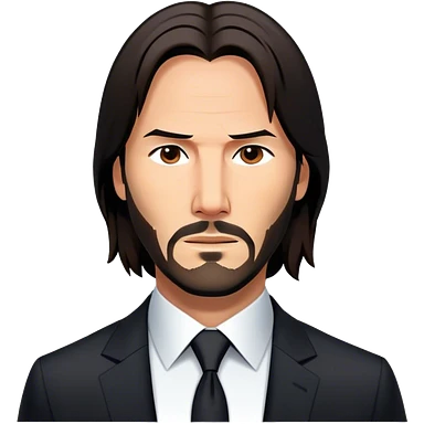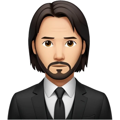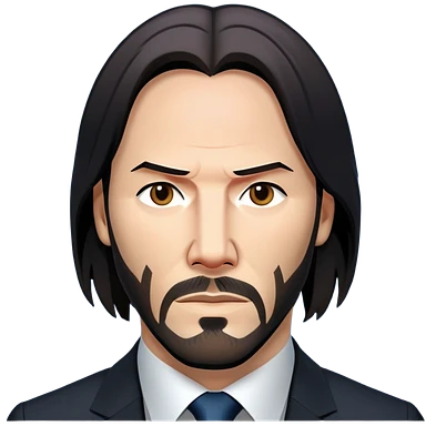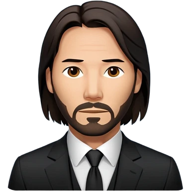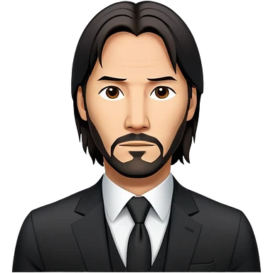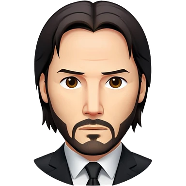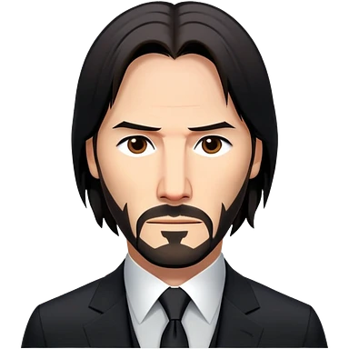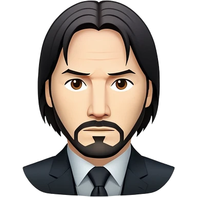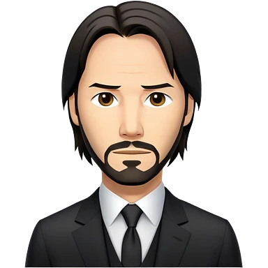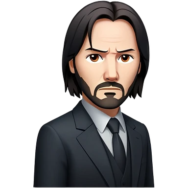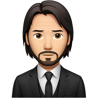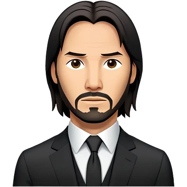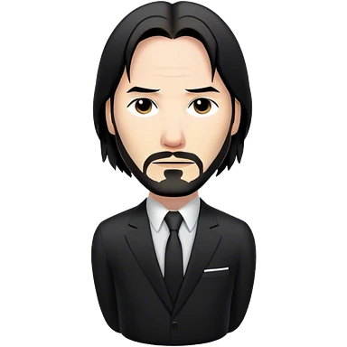 john wick as an apple-style emoji, serious face, black suit, beard, slicked-back hair emoji