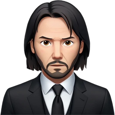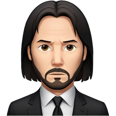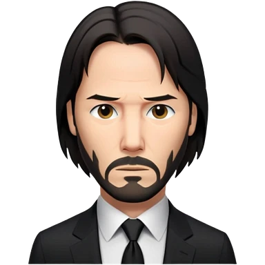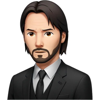 john wick as an apple-style emoji, serious face, black suit, beard, slicked-back hair emoji