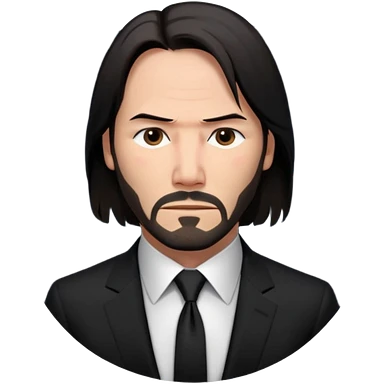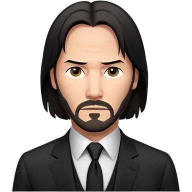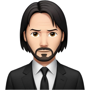 john wick as an apple-style emoji, serious face, black suit, beard, slicked-back hair emoji
