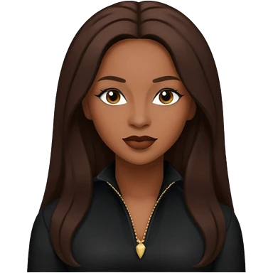 Michelle Williams from Destiny's Child with dark skin ,black long hair, gold outfit emoji