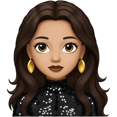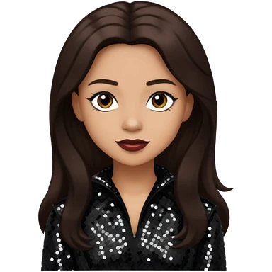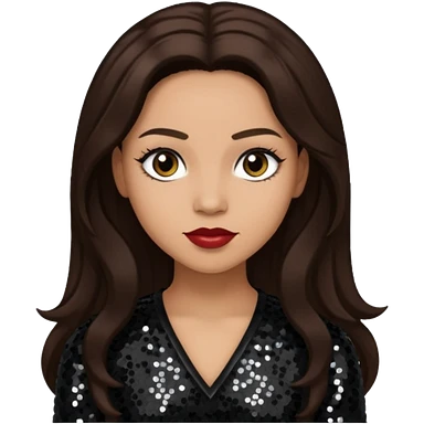 Kiely Williams from 3lw/Cheetah Girls with long jet black hair, black sequin outfit emoji