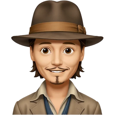 Johnny Depp inspired emoji, mischievous smile, signature look, no text emoji