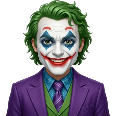 The Joker villain character full body with green hair, purple suit, white face, red lips emoji