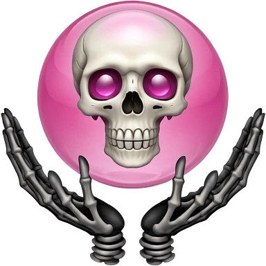 Pink crystal ball held up by skeleton hands emoji