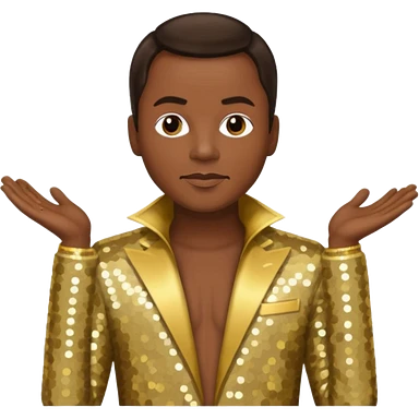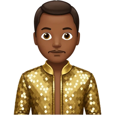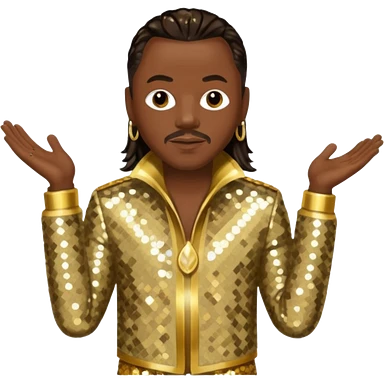 Philip Bailey from Earth, Wind & Fire with dark brown hair, gold sequin outfit emoji