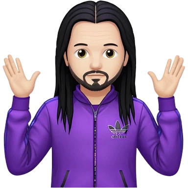 Jonathan Davis long black hair, sequin purple Adidas outfit emoji