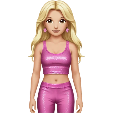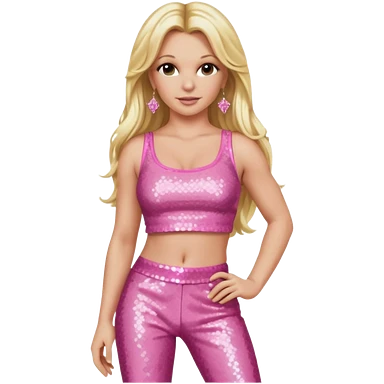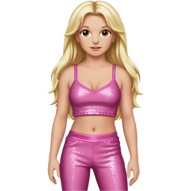 Britney Spears with long blonde hair, pink sequin crop top and pants emoji