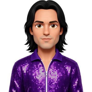Jonathan Davis from Korn with long dark brown hair, light skin, purple sequin outfit emoji