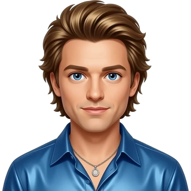 Joey McIntyre from NKOTB with blue eyes, golden brown 90s feathered layer hair, blue metallic shirt, necklace emoji