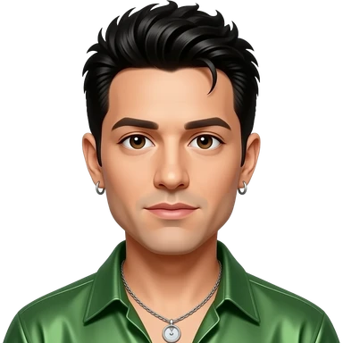 Danny Wood from NKOTB with brown eyes, black hair, green metallic shirt, necklace emoji