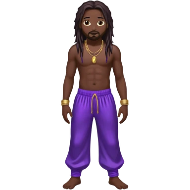 Jonathan Davis with long dark brown, shirtless, metallic purple harem pants emoji