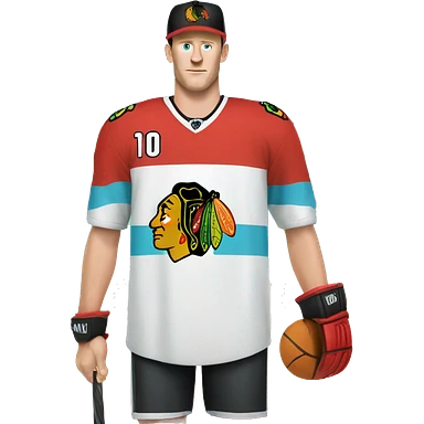 Jonathan Toews as beach bum under rainbow umbrella emoji
