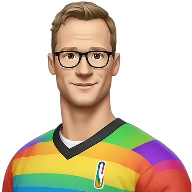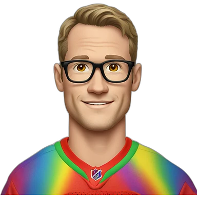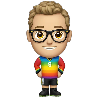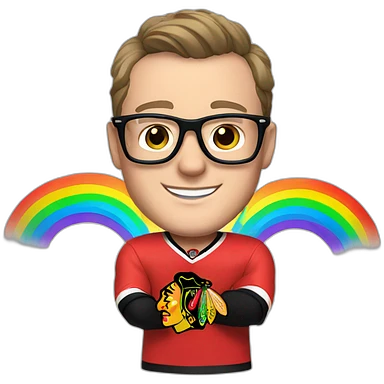 Jonathan Toews wearing glasses and rainbow clothes emoji | AI Emoji Generator