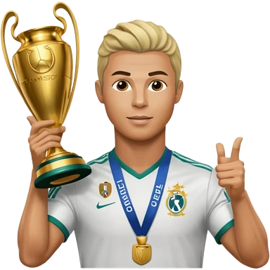 Cristiano Ronaldo holfing the champions league with noodle hair emoji
