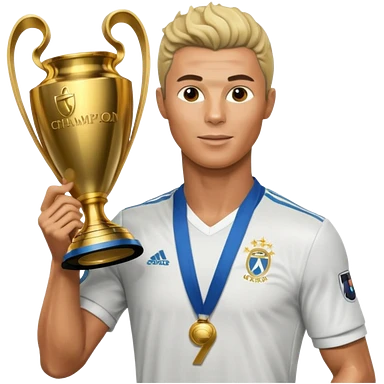 Cristiano Ronaldo holfing the champions league with noodle hair a bit longer noodle hair emoji
