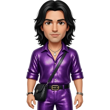 Jonathan Davis from Korn with long dark brown hair, light skin, purple sequin outfit emoji