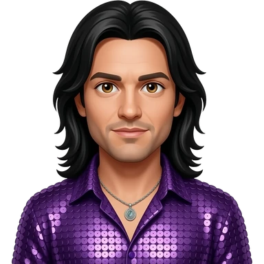 Jonathan Davis with long black hair, purple sequin shirt emoji