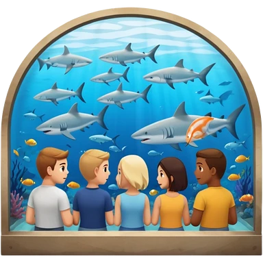 des gens qui sont dans un tunnel en verre et on voit des poissons et requins à travers les parois emoji