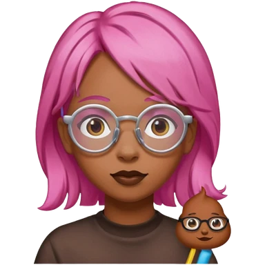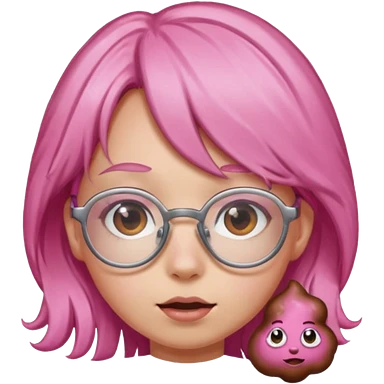 Chica con pelo rosa, gafas de forma de caca y una orquilla de caca emoji