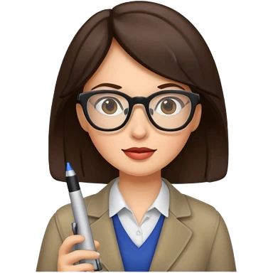 journalist brunette woman with glasses holding camera and notebook emoji | AI Emoji Generator