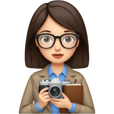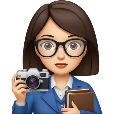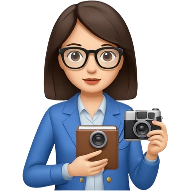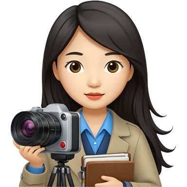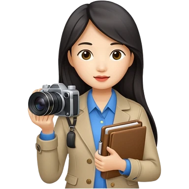 journalist dark skin woman ponytail holding camera and notebook emoji | AI Emoji Generator