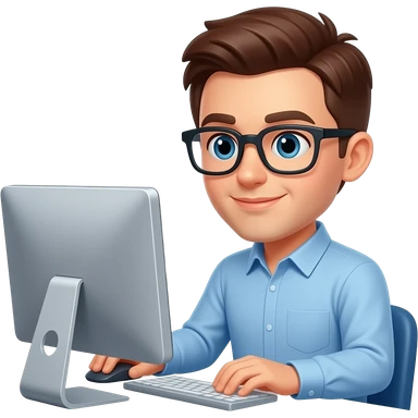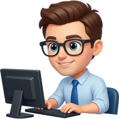 journalist with glasses, very short brown hair no tie working on pc emoji | AI Emoji Generator