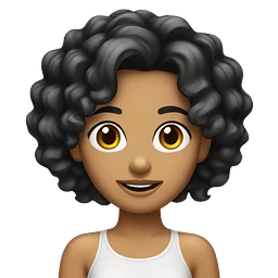 Joven de piel morena, ojos de color negro y cabello rizado emoji