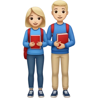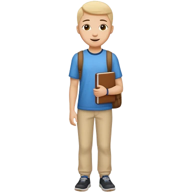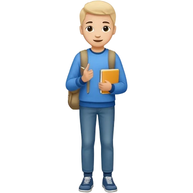 joven estudiante con todossus libros que son muchos, de piel blanca muy feliz y sonriente con un libro en sus manos emoji