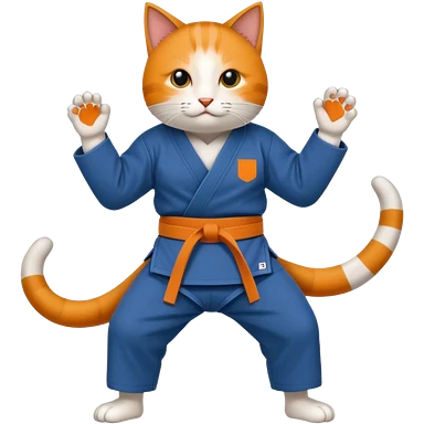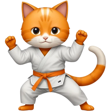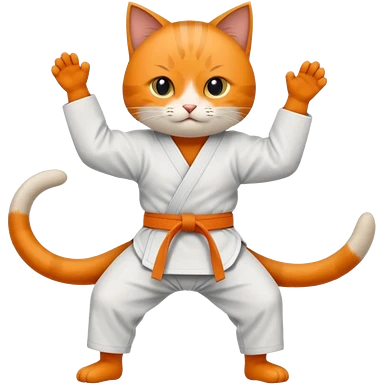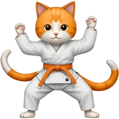 Katze im Judoanzug mit schwarzem Gürtel beim Kämpfen mit ausgestrecktem Bein emoji