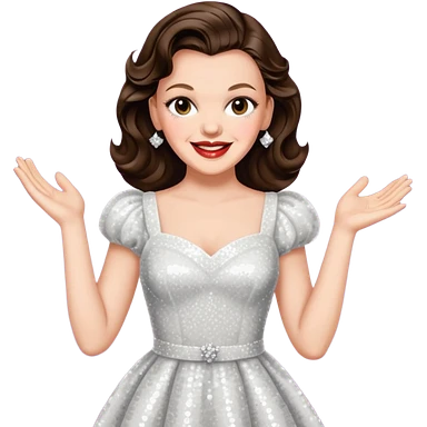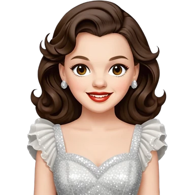 Judy Garland with brown hair, white sequin outfit emoji