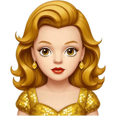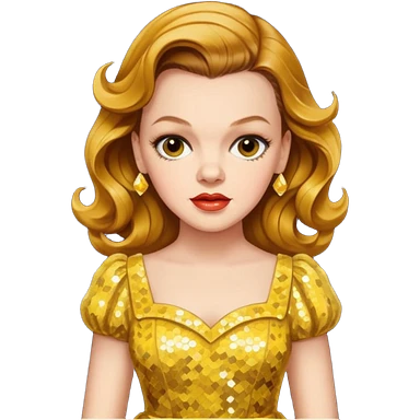 Judy Garland with long golden brown hair, yellow sequin dress emoji