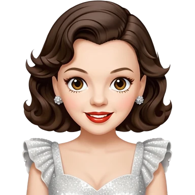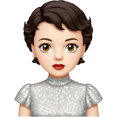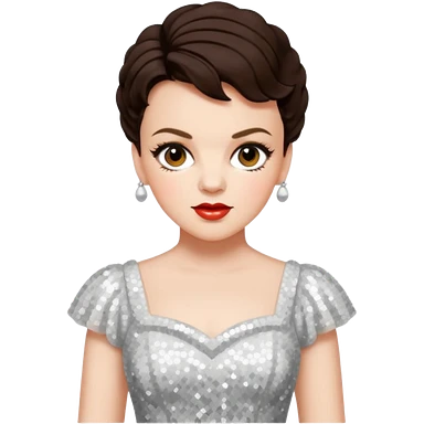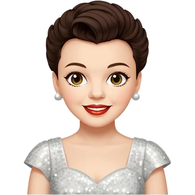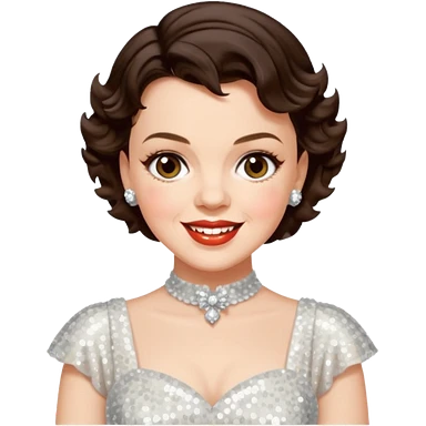 Judy Garland with short dark brown hair, white sequin dress emoji