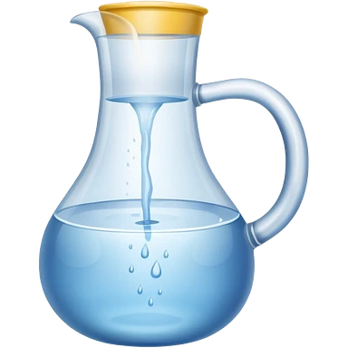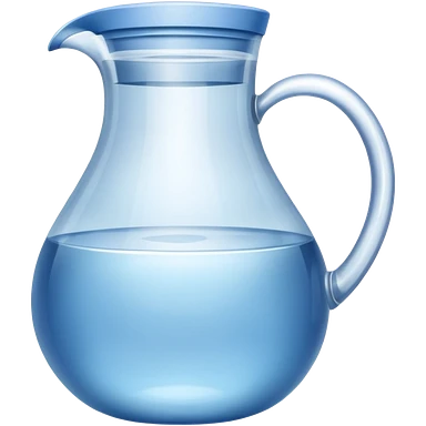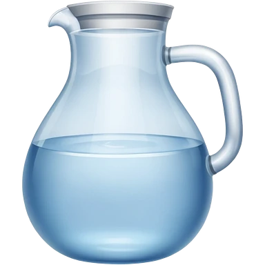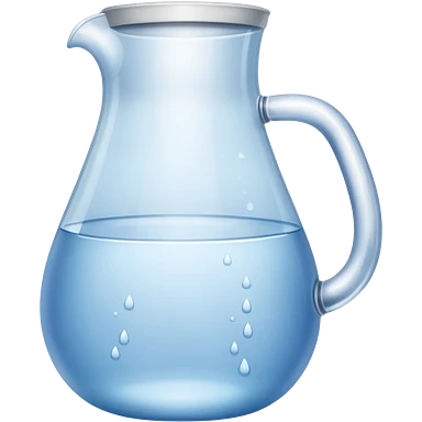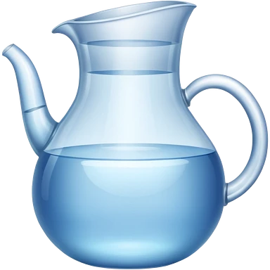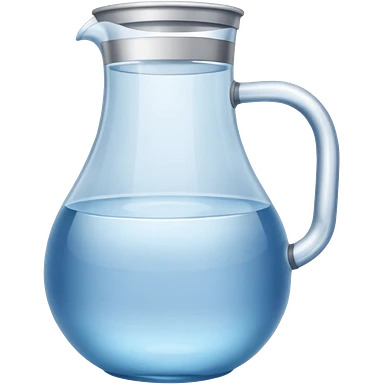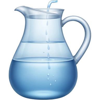 transparent jug of water filled halfway with blue water and three ice cubes floating. beside the jug an additional brown guampa filled with green yerba and a silver straw sticking out. plain background and emoji styled emoji