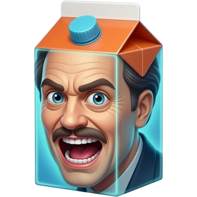 Juice box that looks like Willem Dafoe making a crazy face emoji