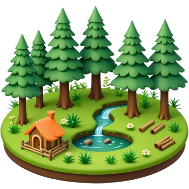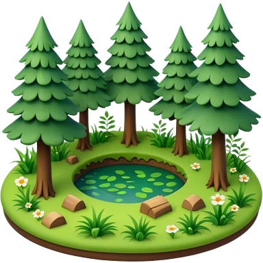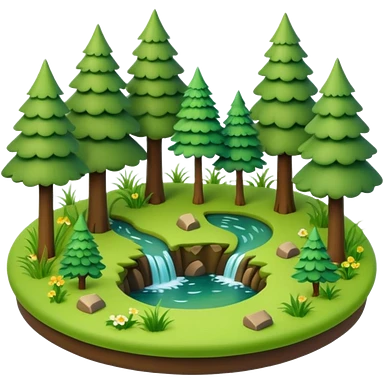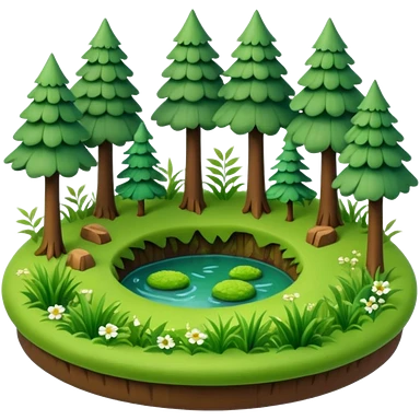 small circular forest clearing with tall trees and grass, miniature world emoji
