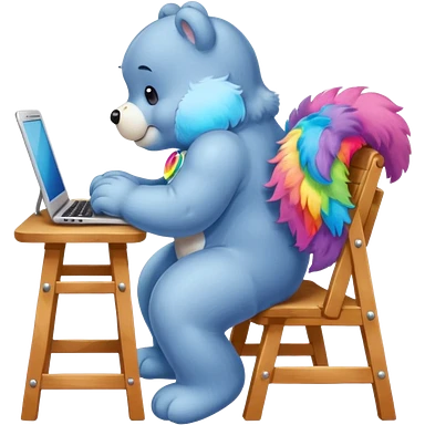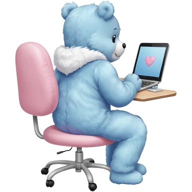 Care bear back view, sit on a chair, working on a computer emoji