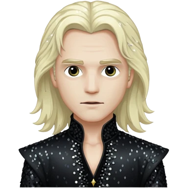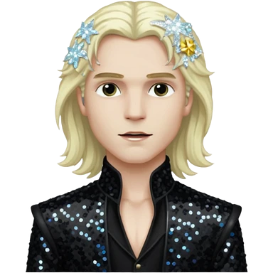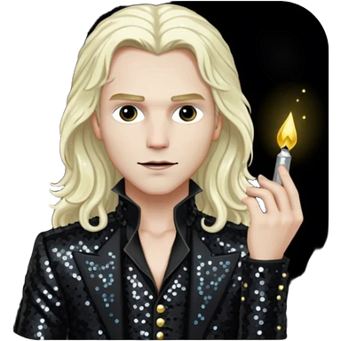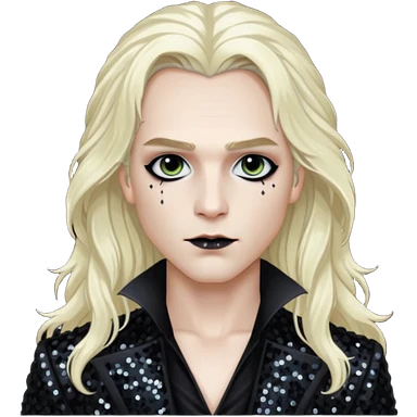 Lestat de Lioncourt with long platinum blonde hair, black sequin outfit emoji