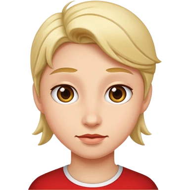 Julia Grant from Summer of Fear with medium red wavy hair, black outfit, white and red eyes emoji