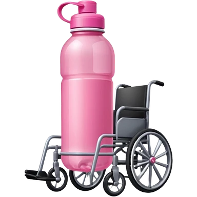 Pink water bottle sitting on a wheelchair with cars in the background emoji