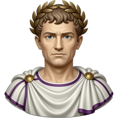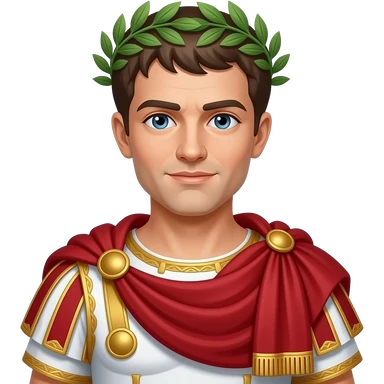 Julius Caesar as an emoji with laurel crown, white toga, classic Roman look emoji
