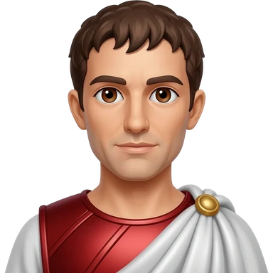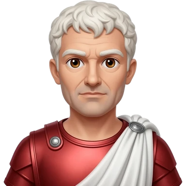 Julius Caesar with brown eyes, dark brown hair, red metallic tunic, white metallic toga emoji