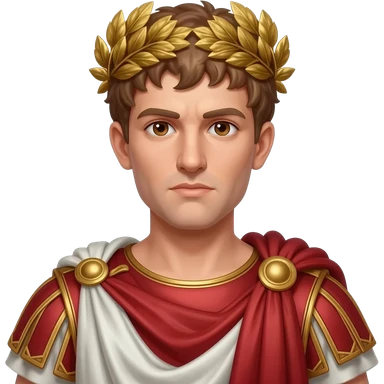 Julius Caesar as an emoji with laurel crown, white toga, classic Roman look emoji