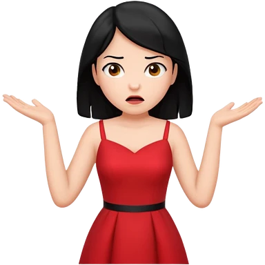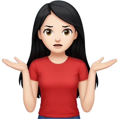 빨간색 티셔츠를 입고 긴 검정머리를 가진 여성이 모르겠다는 듯이 어깨를 올리고 고개를 갸우뚱한 제스처를 하고있음 🤷🏻♀️ emoji