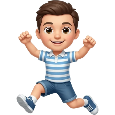 "Apple 3D emoji-style character wakeboarding mid-jump, with arms extended holding an orange rope, legs slightly bent on a yellow board. Stylized water splash behind. Emoji face, rounded body, bright and clean Apple shading." emoji
