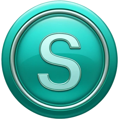 Create a custom emoji badge featuring a stylized, glossy letter “S”. Use the Platinum rank style from League of Legends: teal-green metallics, reflective surfaces, and a futuristic elegant frame. Vibrant and high readability. emoji