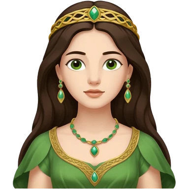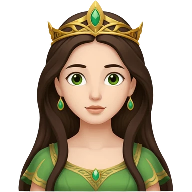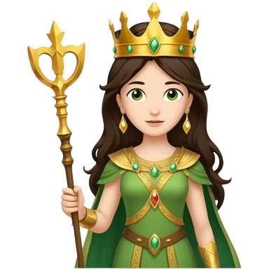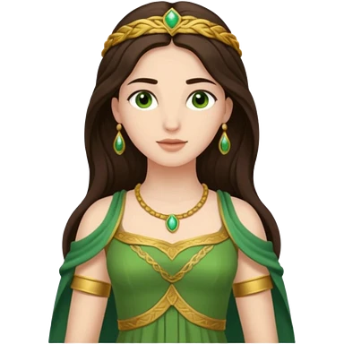 Juno, Marriage Goddess from Rome Mythology with long dark brown hair, green outfit, fair skin emoji