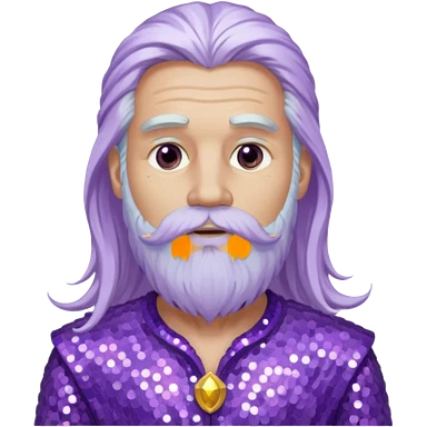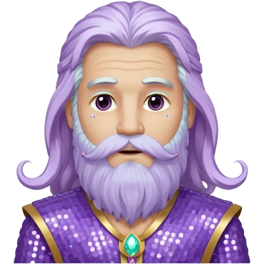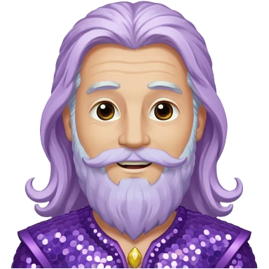 Jupiter, God of the Sea from Gods and Goddesses with long white hair and beard, lilac sequin outfit emoji