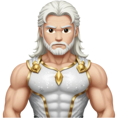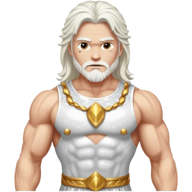Jupiter, God of Thunder from Gods and Goddesses with long white hair, white sequin outfit emoji | AI Emoji Generator