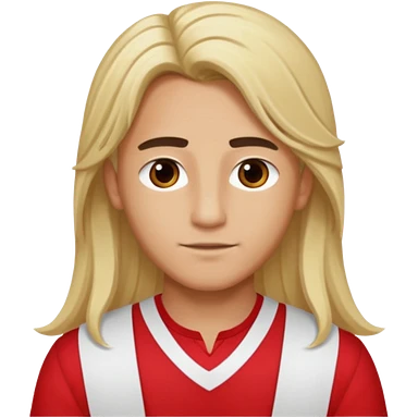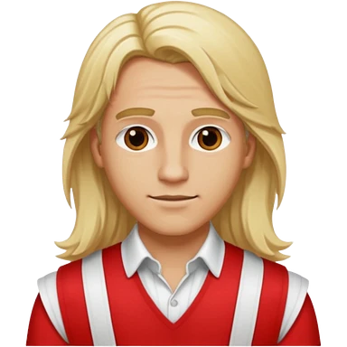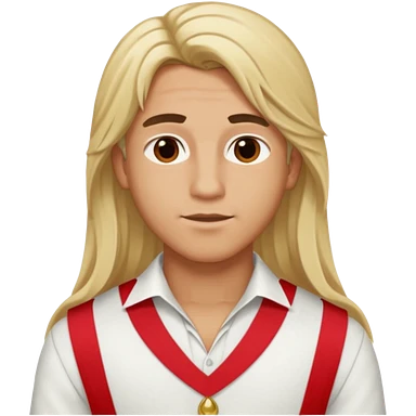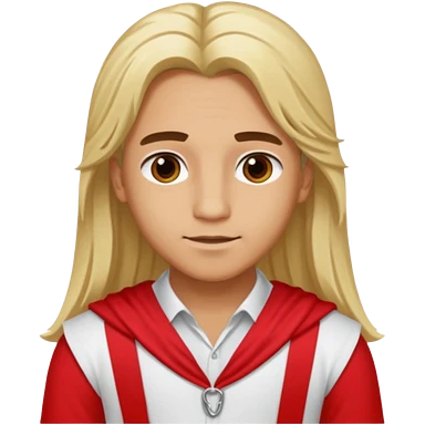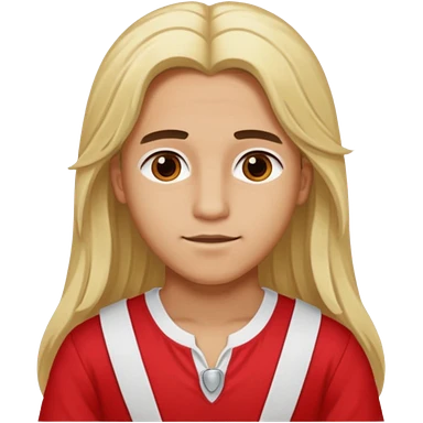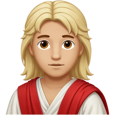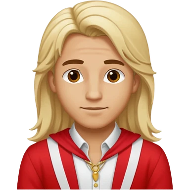 Adonis, Beauty God from Rome Mythology with long blonde hair, red and white outfit, emoji