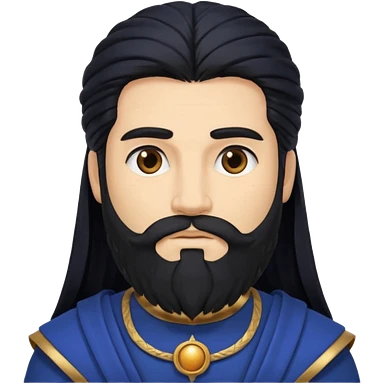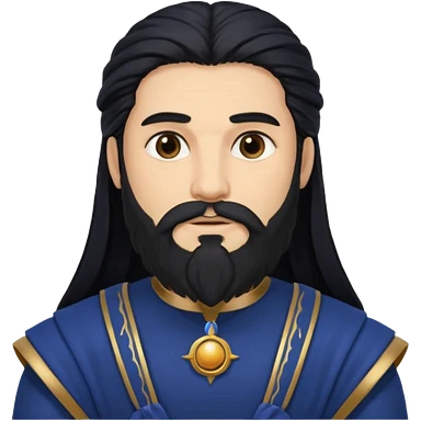 Saturn, Time God from Rome Mythology with long black hair and beard, black and dark blue outfit, light tan skin emoji